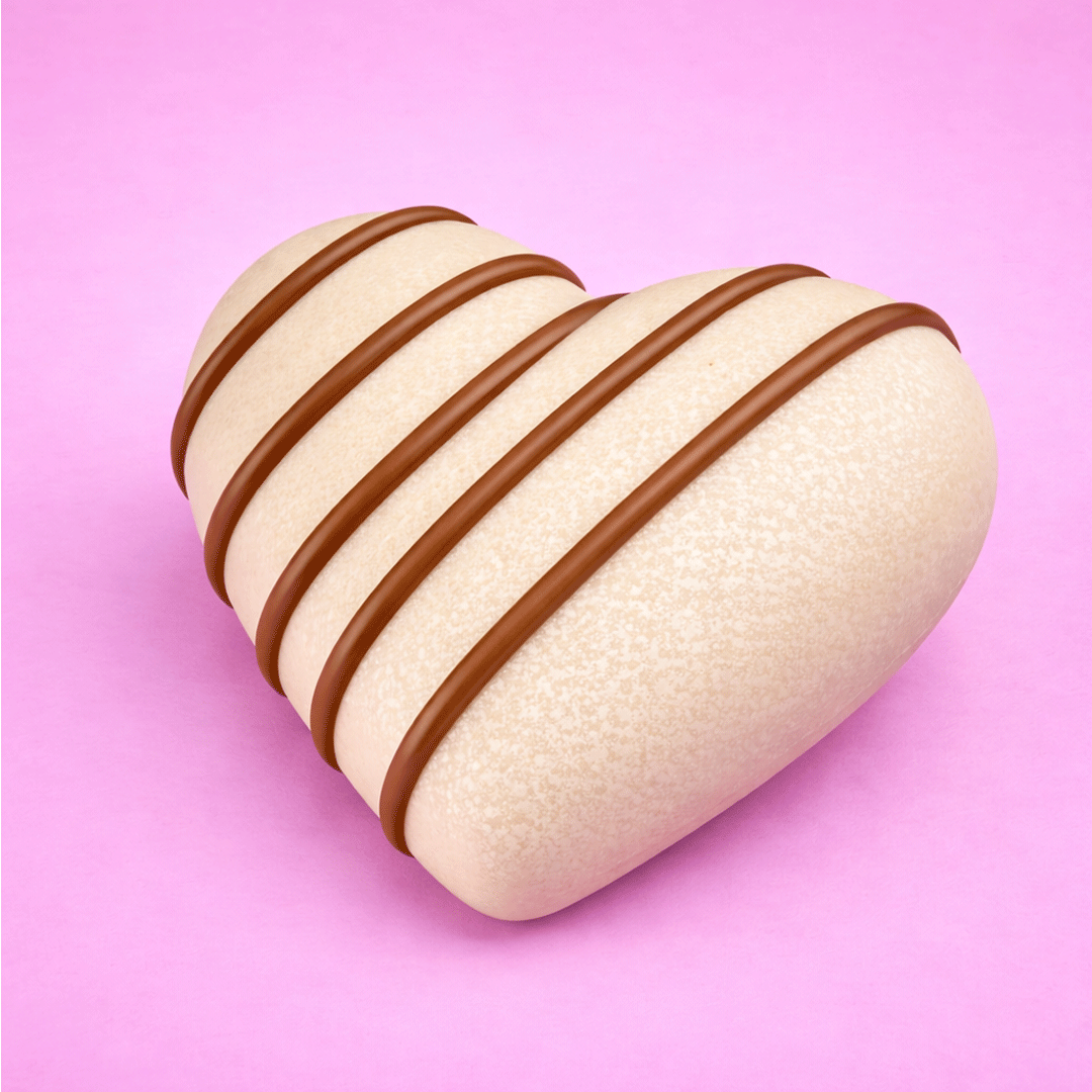 Buenito White è un cuore di cioccolato bianco da circa 350g, ripieno di crema bigusto con 30% di nocciole italiane e muesli croccanti.